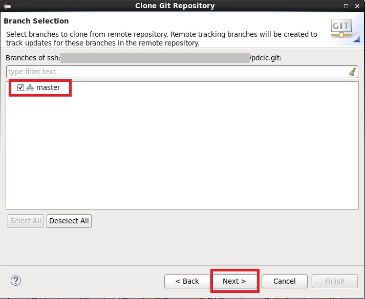 remote repository 의 branch를 선택합니다.